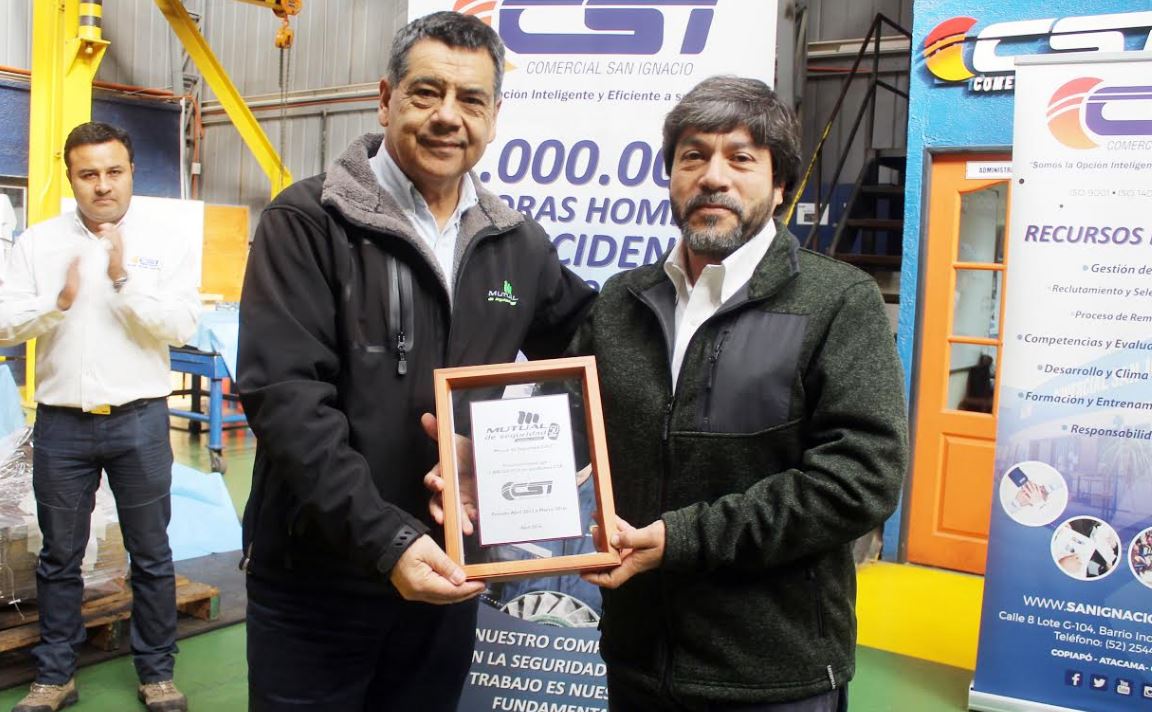 Sociedad Comercial San Ignacio recibió un importante reconocimiento por haber registrado un millón de horas hombre sin accidentes con tiempo perdido, reconocimiento que fue entregado por la Mutual de Seguridad de la C.Ch.C. de Copiapó, en una ceremonia que contó con la participación de sus ejecutivos y de casi un centenar de trabajadores.