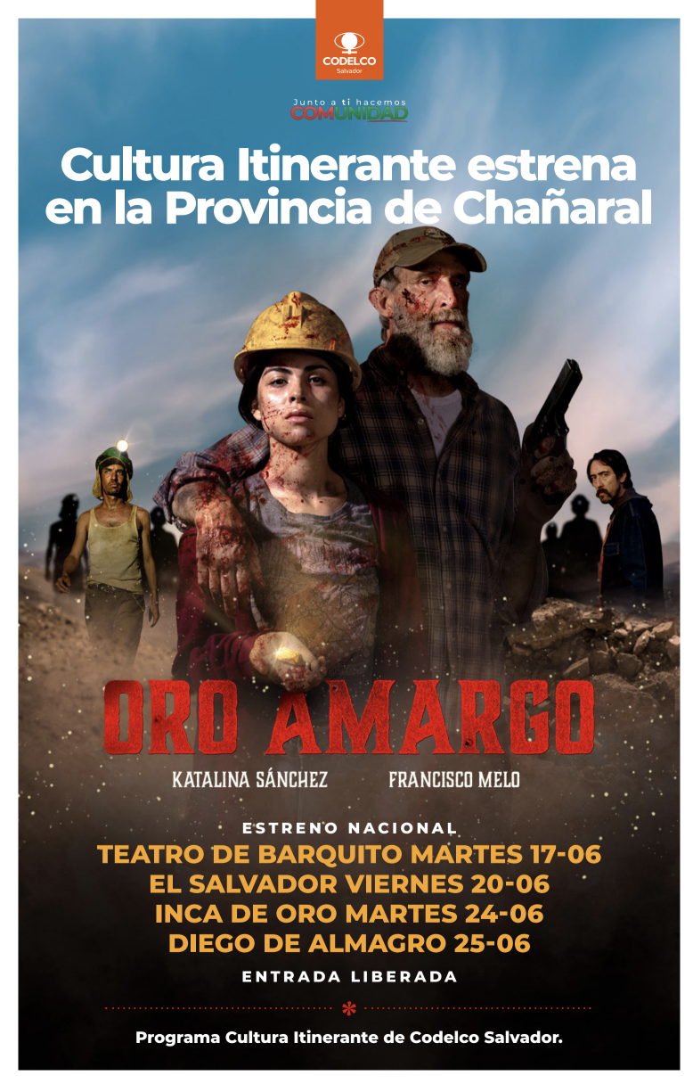 El Programa Cultura Itinerante de Codelco Salvador exhibirá en toda la provincia de Chañaral, el último largometraje del director chileno Juan Francisco Olea, “Oro Amargo”, filme rodado íntegramente en la región de Atacama y, que contó con el financiamiento del Fondo de Apoyo al Cine y al Teatro de BancoEstado, pero también con el respaldo del empresario copiapino, Juan Carlos Morales, propietario de Jcm Ingeniería.