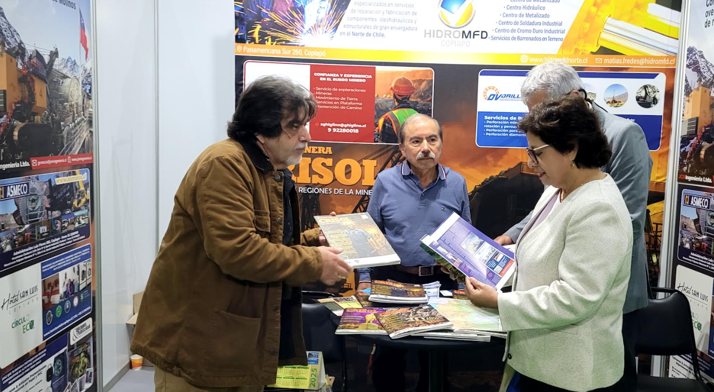 La Ministra de Minería, Aurora Williams Bauzza, visitó el stand de Revista Minera Crisol, resaltando el periodismo especializado de carácter regional como lo es nuestro medio de comunicación, que el año pasado cumplió 30 años de circulación ininterrumpida en el sector.