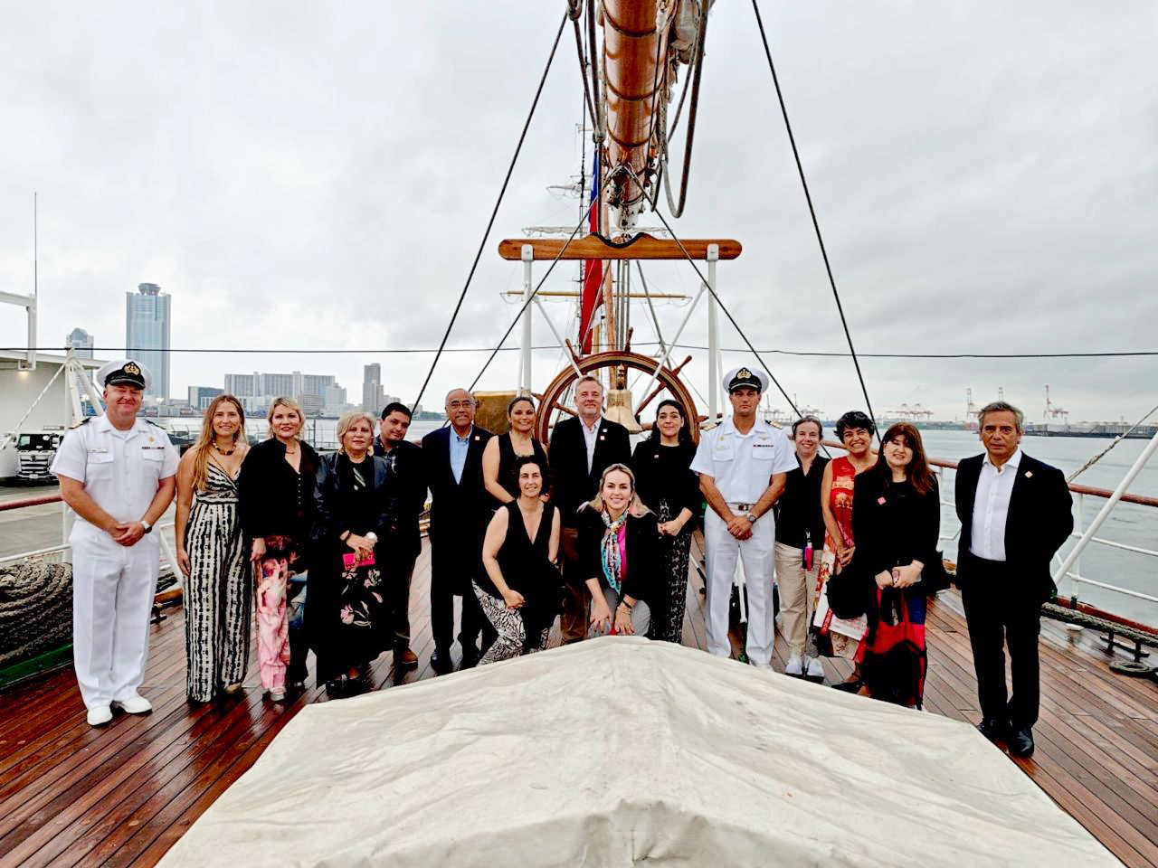 La presencia institucional coincidió también con la recalada del Buque Escuela Esmeralda, donde se desarrollaron actividades de promoción cultural y encuentros de vinculación estratégica, reforzando la imagen país en el marco de esta exposición universal.